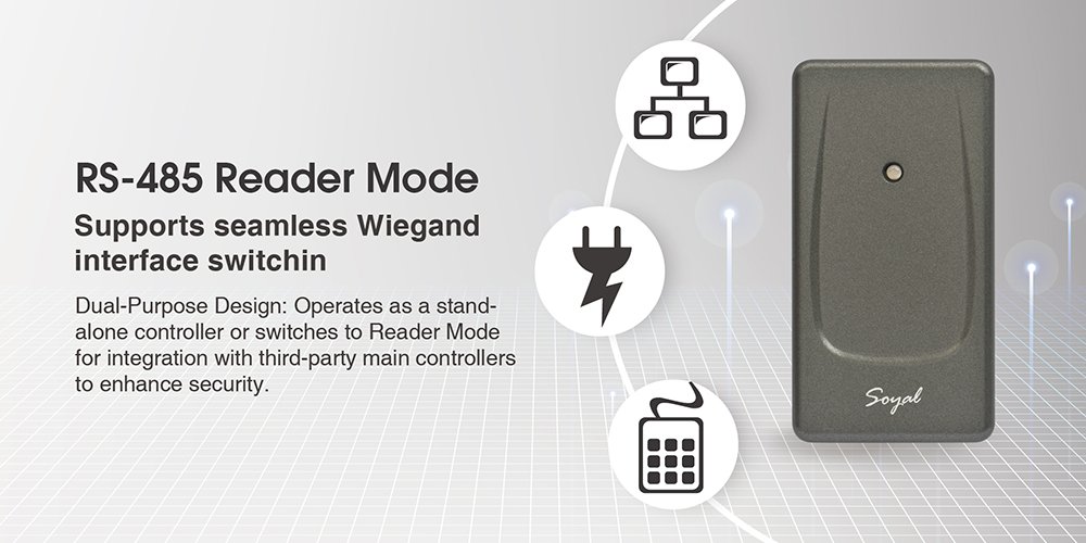 | Host | RS-485 (9600 bps) | RS-485 (9600 bps) / SSC (Soyal Security Communication) |