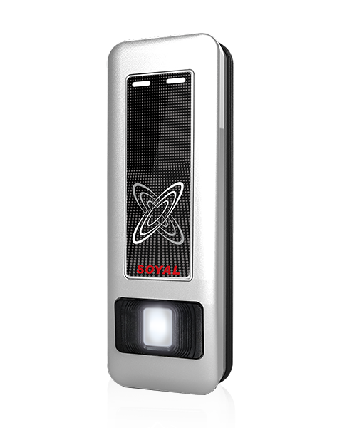 Kontroler akses sidik jari all-in-one berdesain sangat tipis (55mm) dengan housing Zinc Alloy Chrome anti-vandal, sensor sidik jari optik, pembacaan RFID Dual Band, keypad sentuh illuminated dengan Invisible Keypad Function, dan proteksi IP65 — ideal untuk instalasi di ruang sempit maupun outdoor.