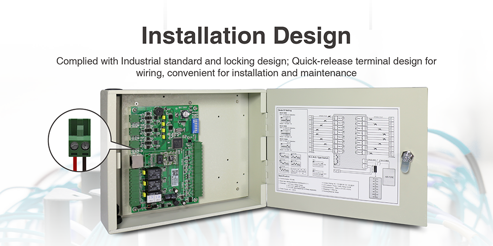 - 5 digital input: 2× Egress, 1× Fire Alarm, 2× Door Status