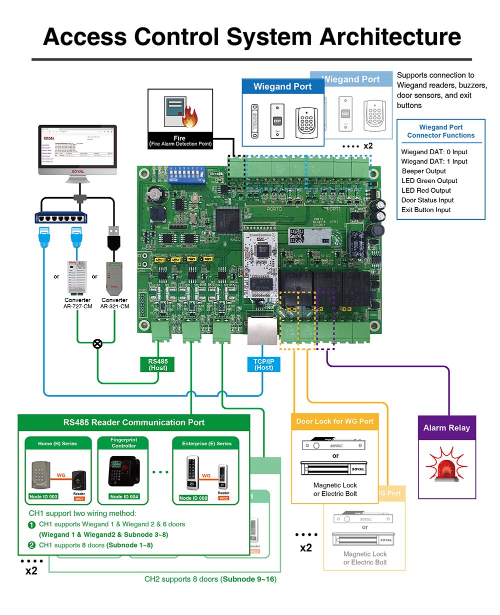 | CH1 (RS-485) | 8 Reader (Node ID 1,2 & WG Port 0,1 share Door Number) |