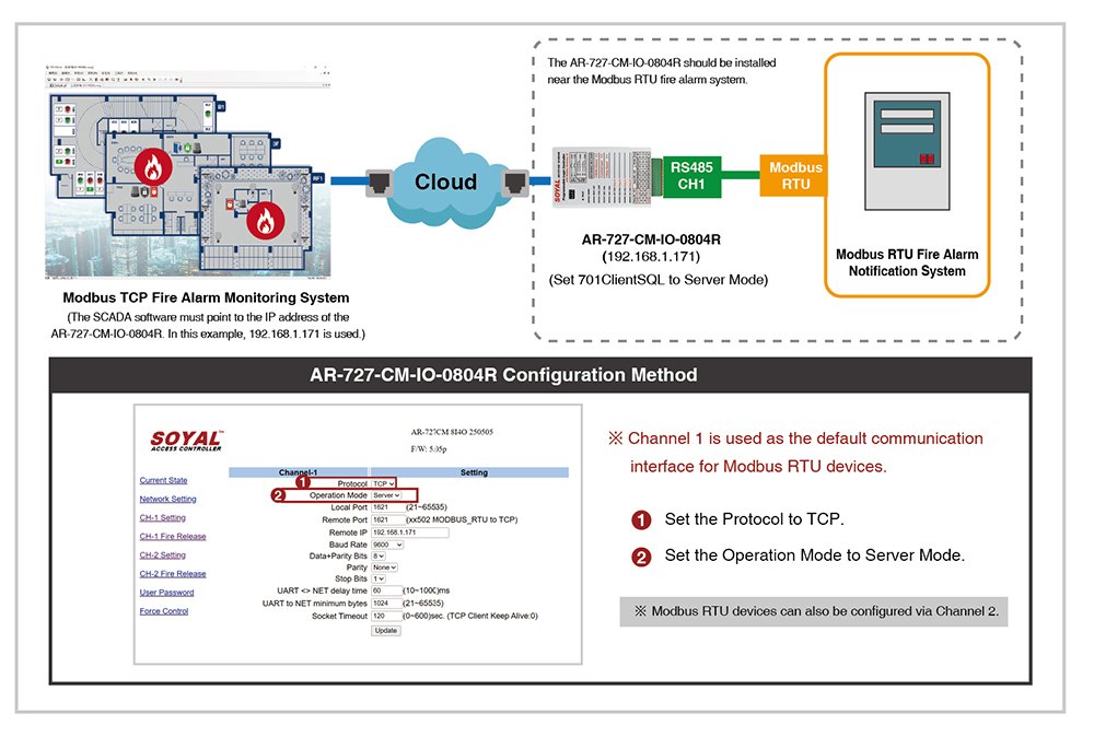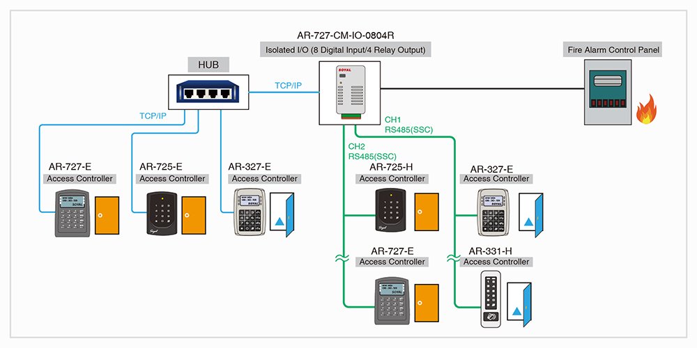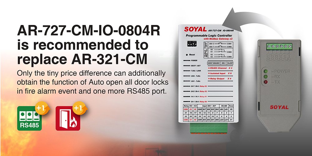 Perangkat ini sepenuhnya kompatibel dengan AR-727-CM-IO-0804M dan dapat digunakan sebagai pengganti langsung. Mendukung fitur fire alarm interlock untuk pelepasan kunci pintu darurat, integrasi SCADA untuk monitoring cerdas, serta kontrol jarak jauh melalui SOYAL 727 APP.