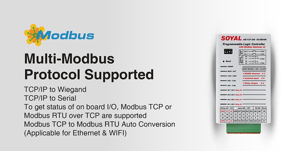 Home » Produk » Signal Converter Produk » Soyal Isolated I/O (8 Digital Input/4 Relay Output) & Dual Communication Ports RJ45 to RS485 AR-727-CM-IO-0804R