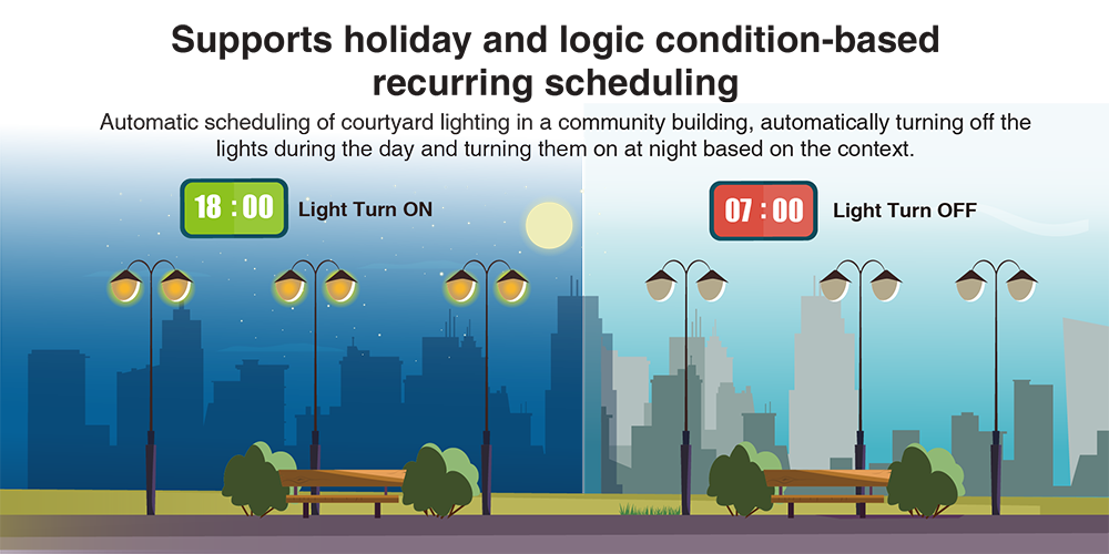 - Penjadwalan Logika Gedung Cerdas: Fitur unik penjadwalan otomatis dengan kondisi waktu kalender, hari libur, counter, timer, DI, dan DO untuk manajemen gedung besar.