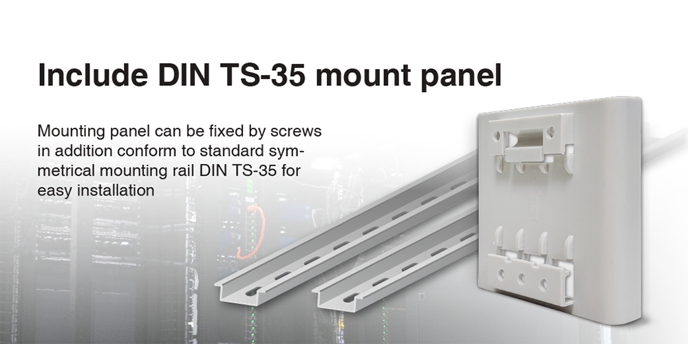 - Pemasangan DIN Rail TS-35: Desain ringkas untuk pemasangan mudah pada DIN rail standar industri.