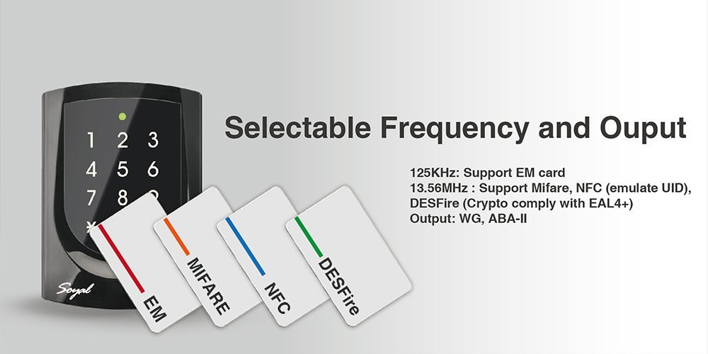 - Varian 13.56MHz: SSC (SOYAL SECURITY COMMUNICATION) untuk enkripsi data komunikasi yang ditingkatkan.