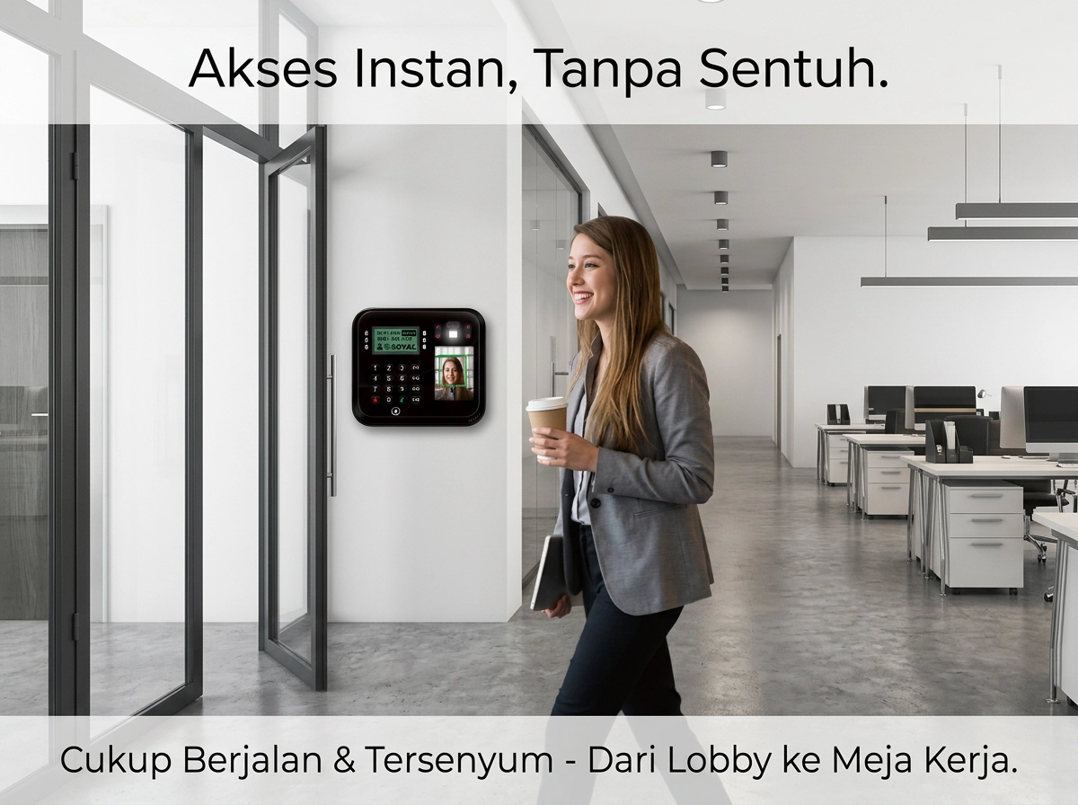 Anda tidak akan pernah lupa membawa wajah. Cukup berjalan dan tersenyum, akses langsung terbuka — dari lobby gedung hingga meja kerja. Reader Soyal mengenali wajah secara instan tanpa menyentuh apapun.