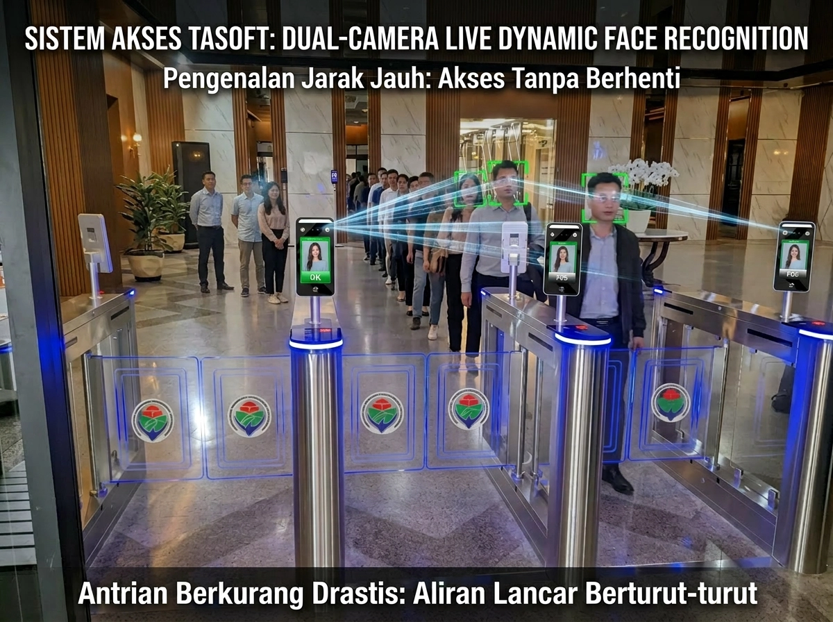 Face recognition access control menyelesaikan semua masalah di atas dengan satu teknologi biometrik yang praktis.